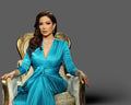 women's sleeves blue satin long dress featuring a knot on it's waist