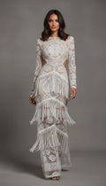 Women’s long sleeve with two openings on both waist sides featuring the Cleopatra graphics and white braided ropes from the waist till the bottom