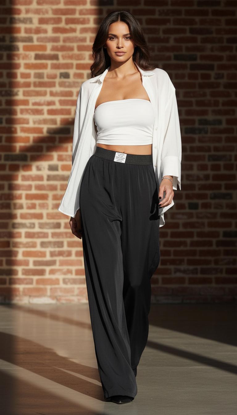 women's wide leg satin pants featuring Brooklyn Bridge bandage on its waist