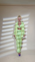 Women’s crepe suite set blazer with short crop top and wide crimped pants