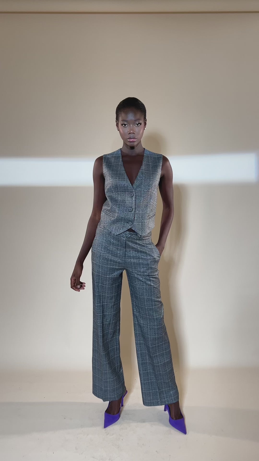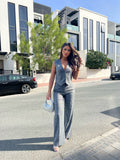 Women’s Suit Set Vest Wide Leg Pants Business Outfits Sleeveless V-Neck Dressy 2 Piece