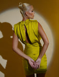women's kiwi's high neck wavy shape mini dress featuring a back opening