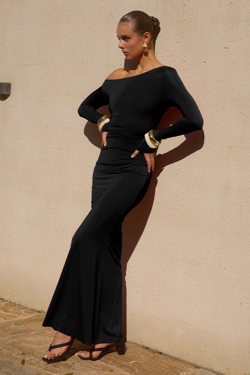 The Amore Dress is a versatile and stylish off shoulder maxi dress, available in both red and black. With its elegant design and flattering silhouette, this dress is perfect for any occasion. Upgrade your wardrobe with this must-have piece.