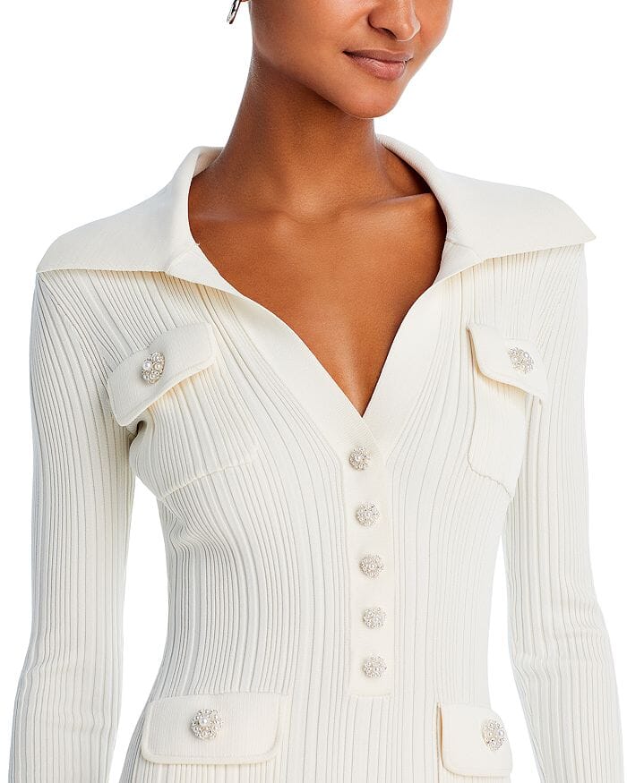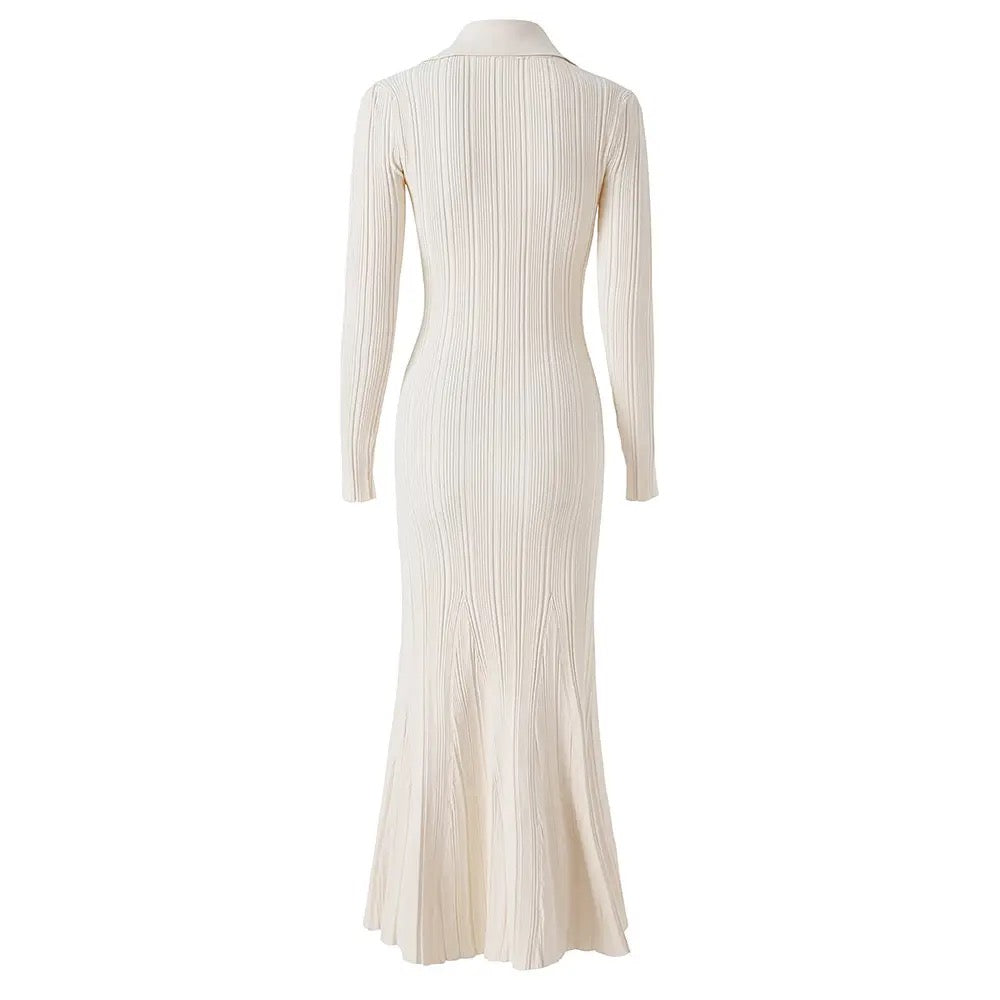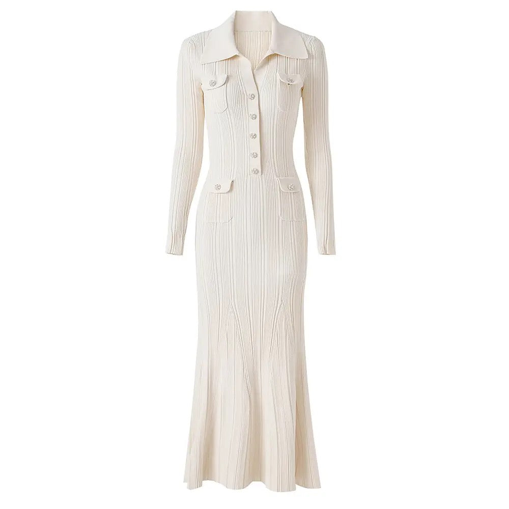 This Dove Dress exudes a timeless elegance with its classic white knit design and luxurious gold buttons. The refined silhouette is perfect for any occasion, making it a versatile addition to any wardrobe. Elevate your style with this classy and sophisticated piece.
