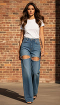 Noya Jeans feature a unique cutout on the thigh area, adding a trendy touch to your wardrobe. The stylish design will make you stand out while the cutouts allow for ventilation and a comfortable fit. Upgrade your style with Noya Jeans.