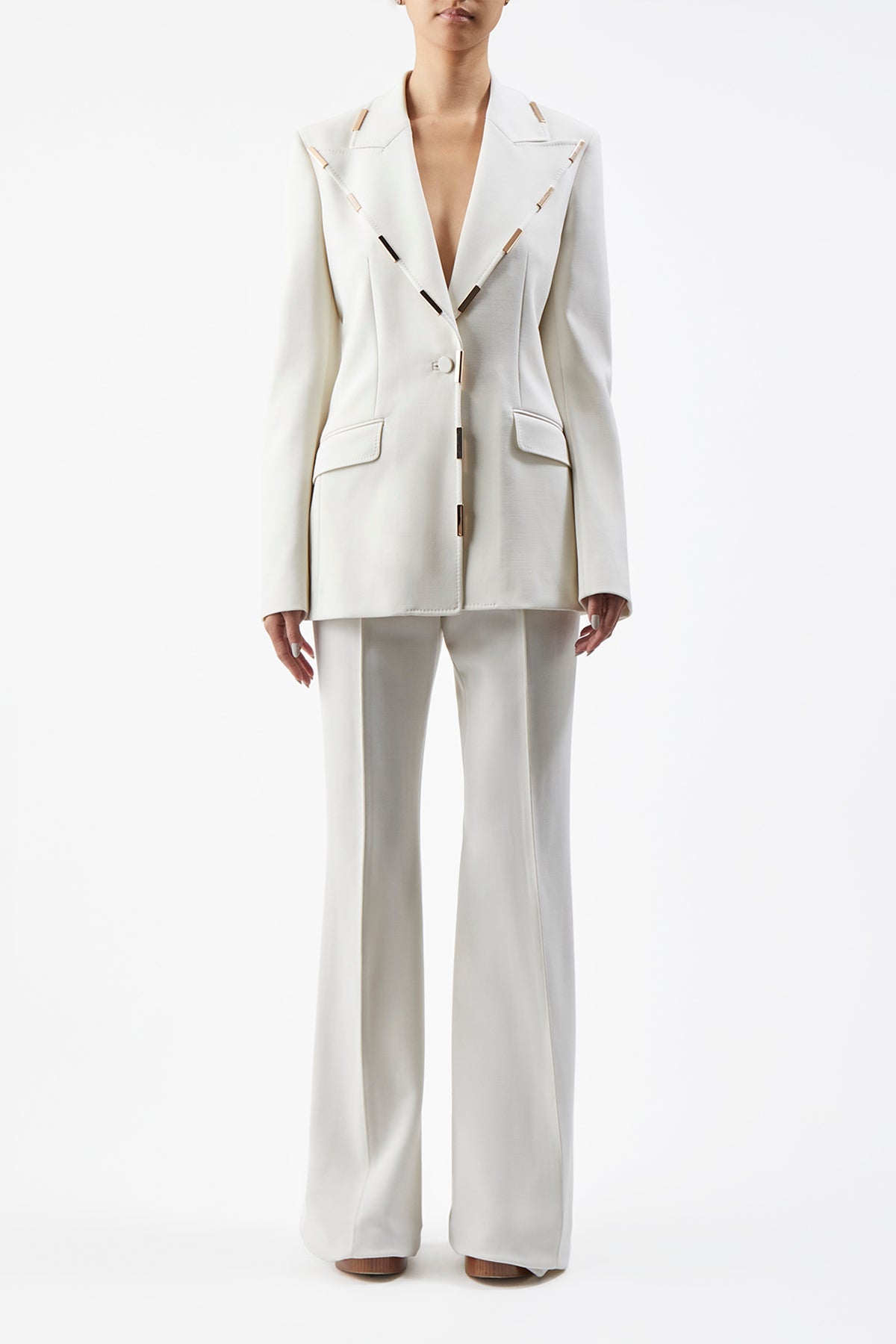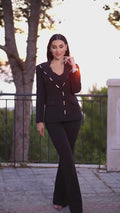 The Ciara Set offers a timeless and effortlessly stylish look with its tailored blazer and matching pants. Available in both classic white and sleek black, this set exudes sophistication and elegance. Perfect for any formal or professional event, elevate your wardrobe with this stylish and versatile ensemble.
