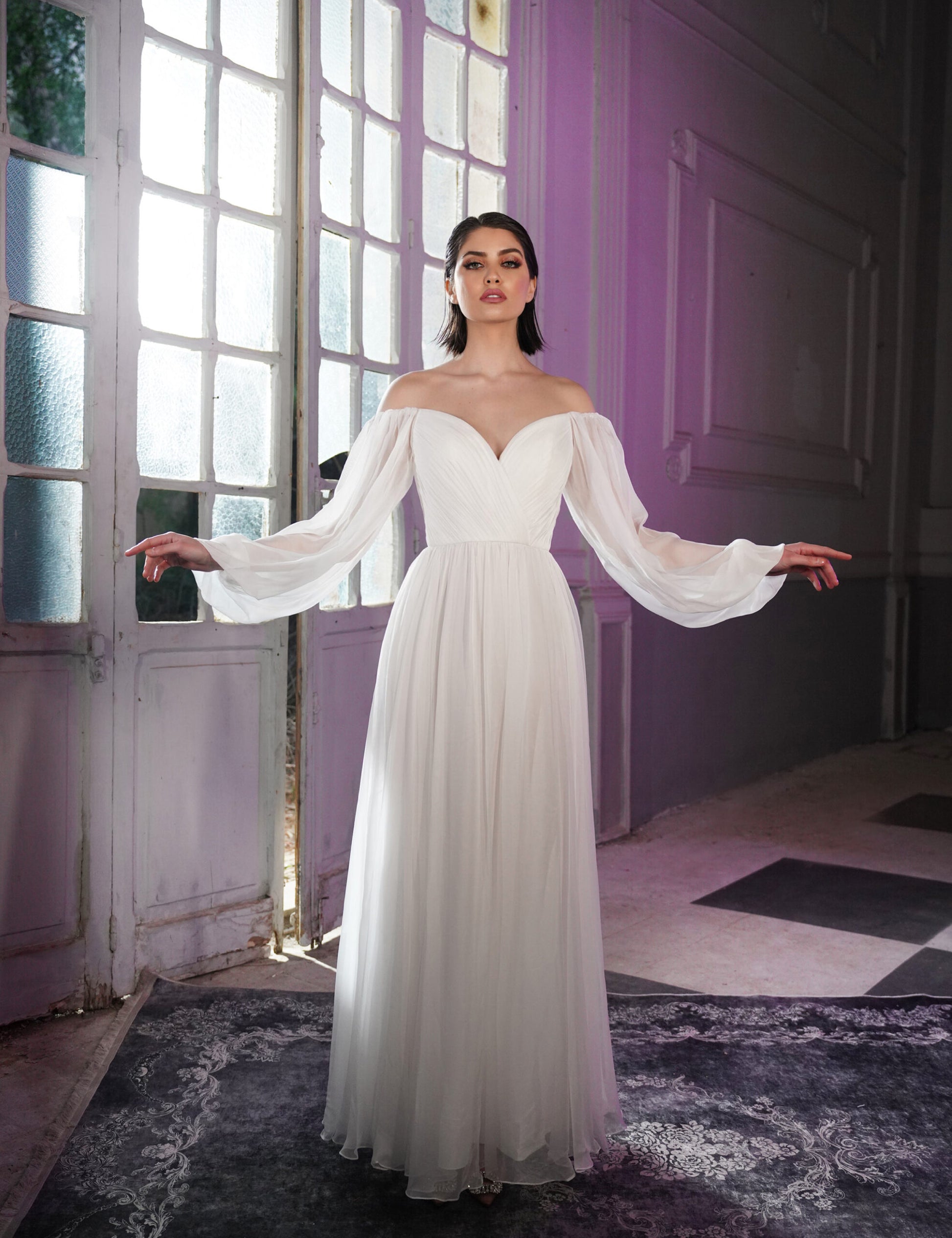 Women’s white long transparent sleeves featuring an off shoulder style with simple princess vibes dress