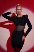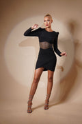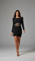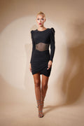 women’s long sleeve slight puffy shoulders with a rainbow glitter opening on the belly mini dress