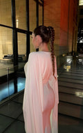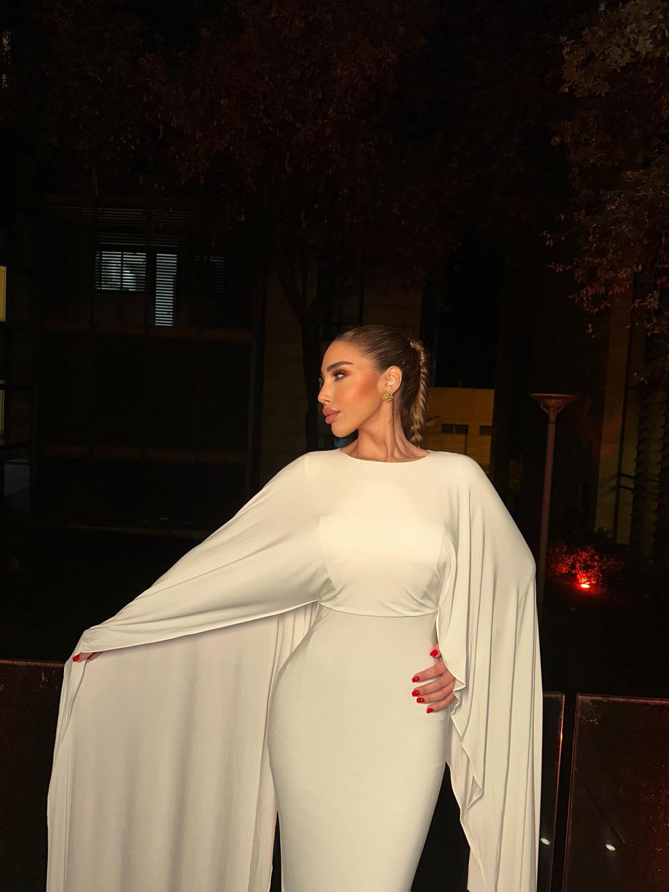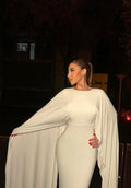 Grace meets power in this white cape dress. With its flowing sleeves and sleek fit, it’s perfect for elegant nights, special occasions, and statement entrances.