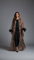 Tiger Print chiffon abaya featuring more than 6 meters of ostrich feathers